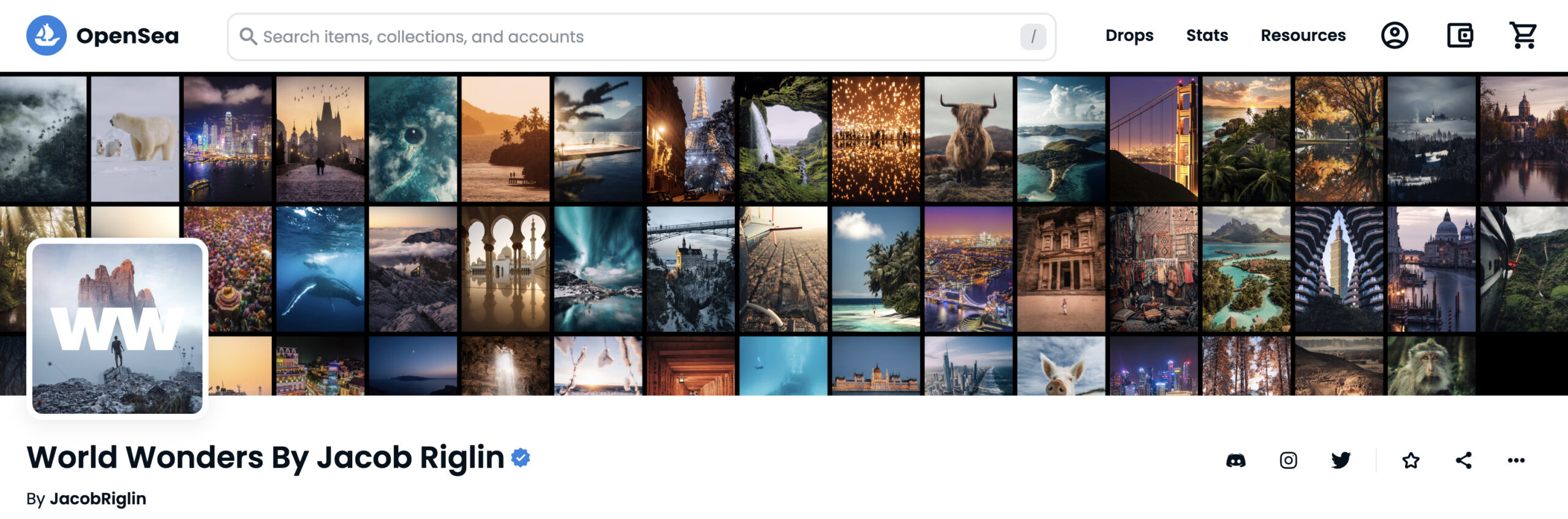 Jacob Riglinの「World Wonders(世界の驚異)」は、世界各地の驚異的な自然風景や建築物を撮影した写真集で、NFTアートとしても販売されています。